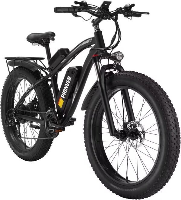 26 x 4,0 tollised FAT-rehvid E-Bike – Liigu lihtsalt liivas, lumes või teel. Raam on valmistatud vastupidavast 6061 alumiiniumisulamist, täisvedrustus pakub sujuvat pehmendust ja löögisummutust, kui sõita ebatasastel maastikel, nautides sõidu ajal stimulatsiooni.