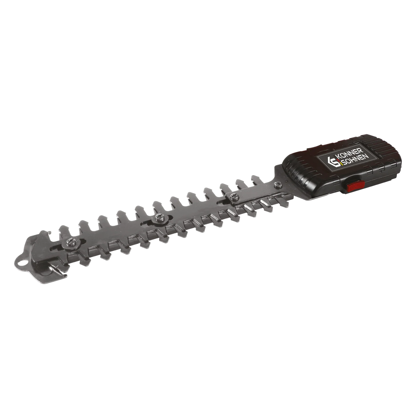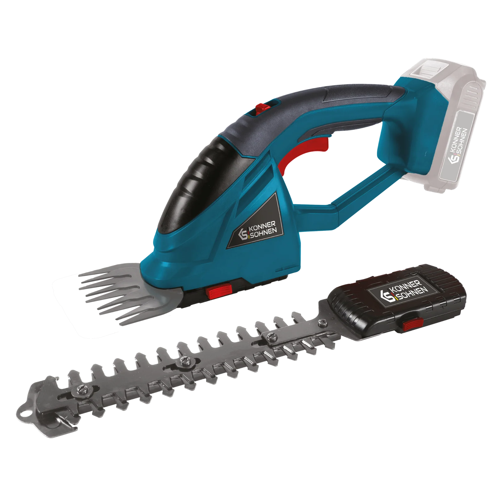 Akuga käärid muru ja hekkide jaoks Saksamaa brändilt Könner & Söhnen® – mugav ja tõhus tööriist hekkide, põõsaste ja muru hooldamiseks. Kvaliteetsed topeltterad tagavad puhtad lõiked, samas kui ergonoomiline disain vähendab väsimust ka pikaajalisel kasutamisel. Topelt turvasüsteem sisaldab turvalukku ja mehhanismi juhusliku aktiveerimise vältimiseks. Kiire teravahetussüsteem lisab mitmekülgsust. Kerge disain tagab mugava kasutamise ja vähendab käte koormust. Tänu nendele eelistele sobivad käärid nii kogenud aednikele kui ka algajatele. Suurepärane lahendus aia hooldamiseks ja kauni maastiku loomiseks.