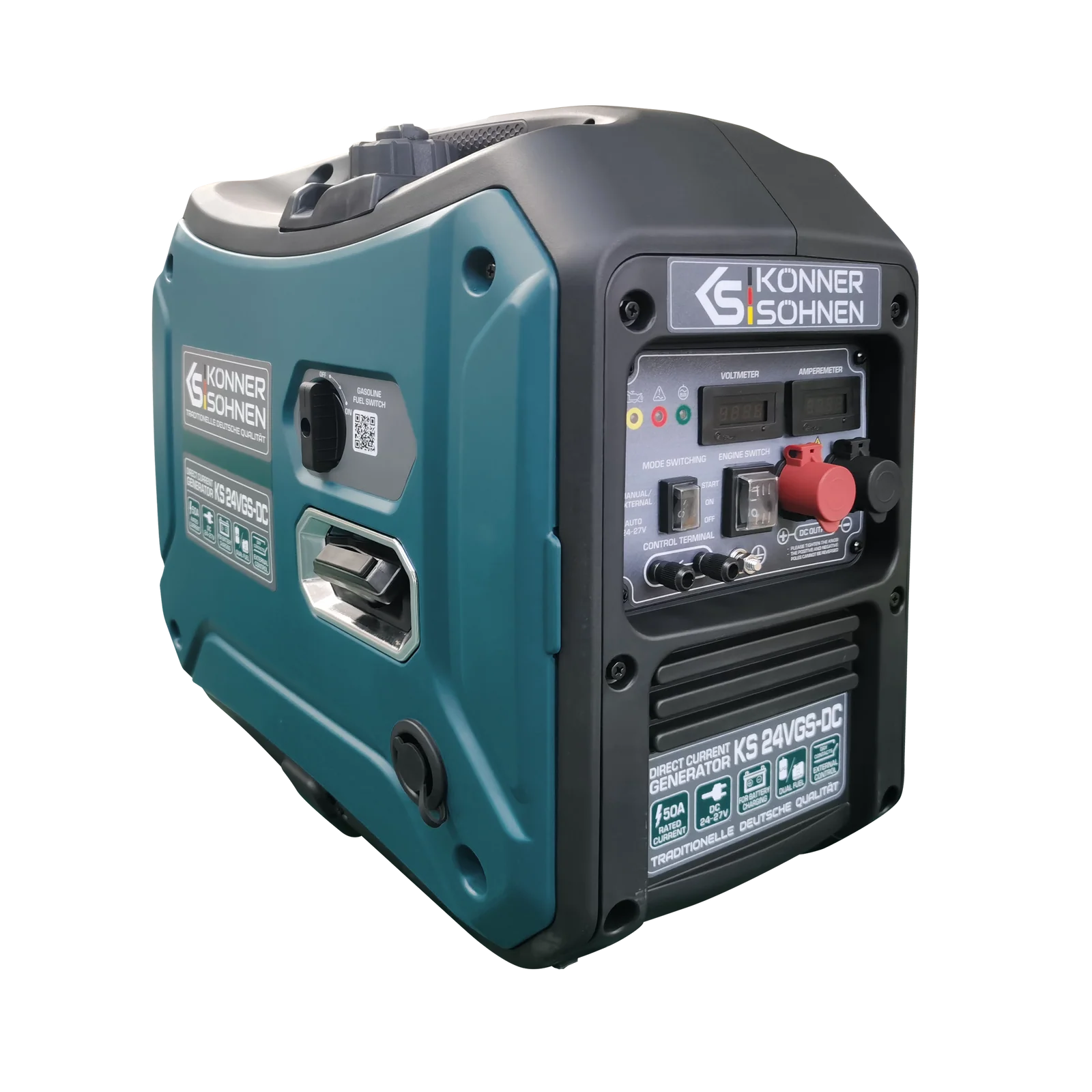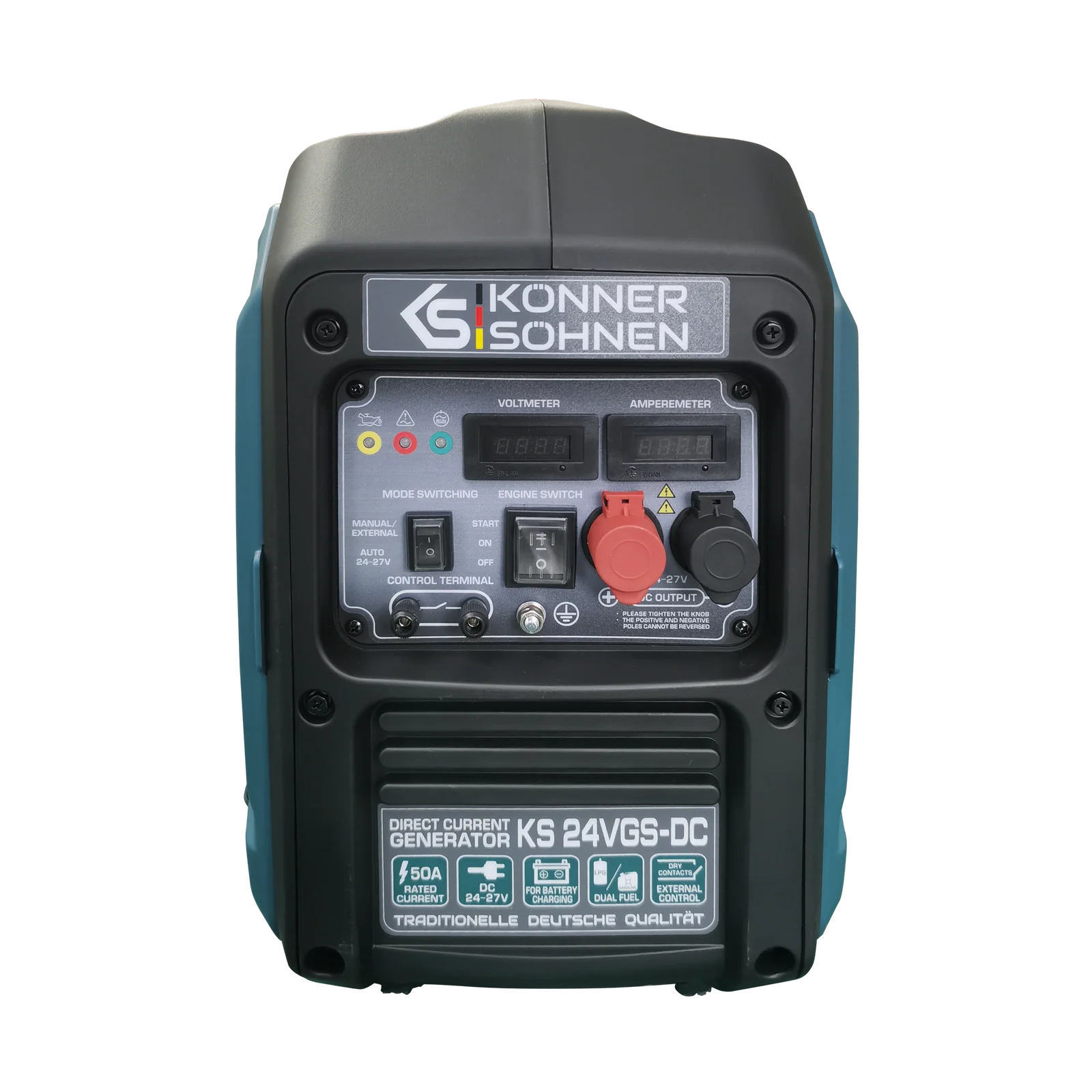 Saksa kaubamärgi Könner & Söhnen® 24–27 V, 50 A, kahekütuselise tööga püsipinge generaator on loodud 24–27 V akude varutoite laadimisseadmeks, ühendades tõhususe ja kasutusmugavuse. Otsene alalisvoolu laadimine välistab pingemuundamise vajaduse ja vähendab kütusekulu võrreldes vahelduvvoolugeneraatoritega. Automaatrežiim jälgib aku laetust, samal ajal kui kasutajasõbralik juhtpaneel teeb seadme kasutamise lihtsaks. Sobib ideaalselt päikeseelektrijaamadele, telekommunikatsioonisüsteemidele ja muuks. Töötab bensiinil või LPG-l. Helikindel korpus vähendab mürataset ja tagab mugava kasutamise.