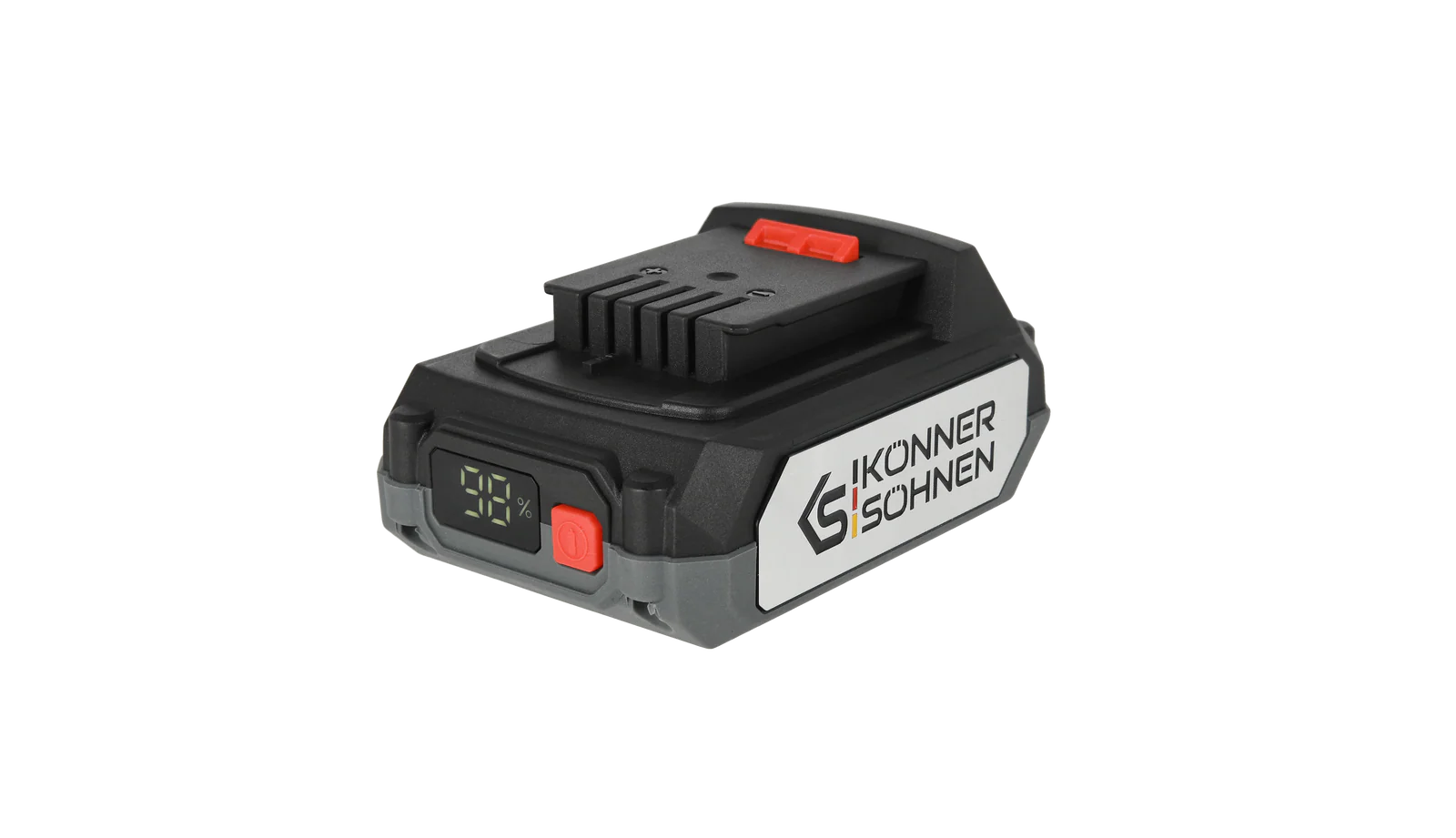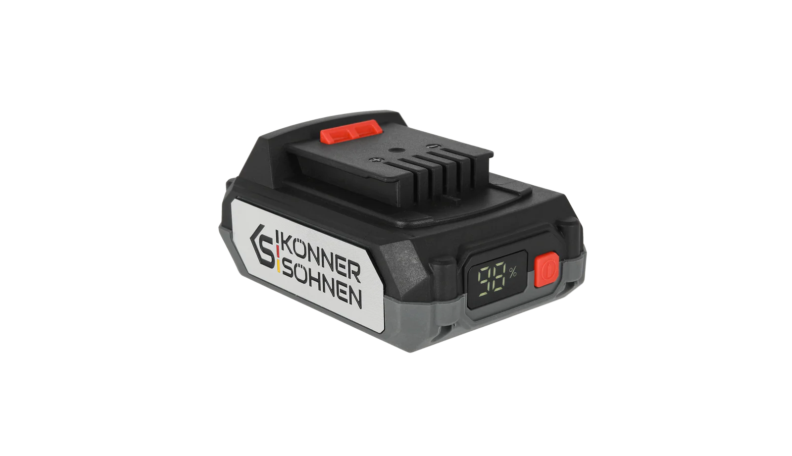 Könner & Söhnen® 20V liitiumioonaku on ühilduv kõigi aiatööriistadega Könner & Söhnen® ühtse akusüsteemi seeriast. Nii saate märkimisväärselt säästa raha ja aega, kasutades ühte akut erinevate seadmetega!