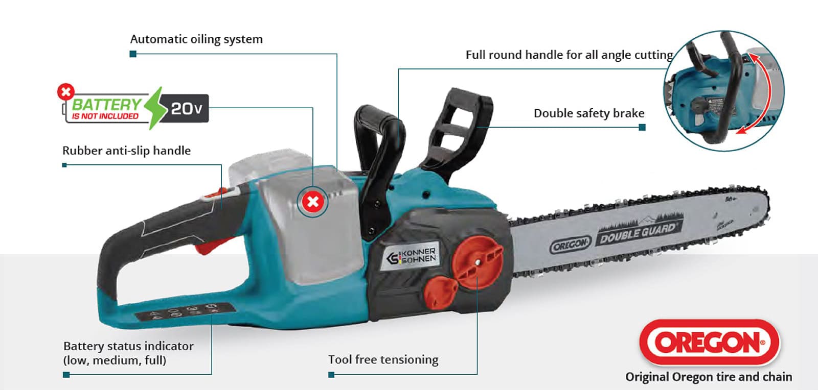 Könner & Söhnen® juhtmeta kettsaed on kaasaegsed aiatööriistad, mis põhinevad liitiumioonakudel. Juhtmeta kettsaagide peamine eelis on nende mobiilsus – tööriista saab kasutada raskesti ligipääsetavates kohtades, mis asuvad kaugel keskvõrgust.