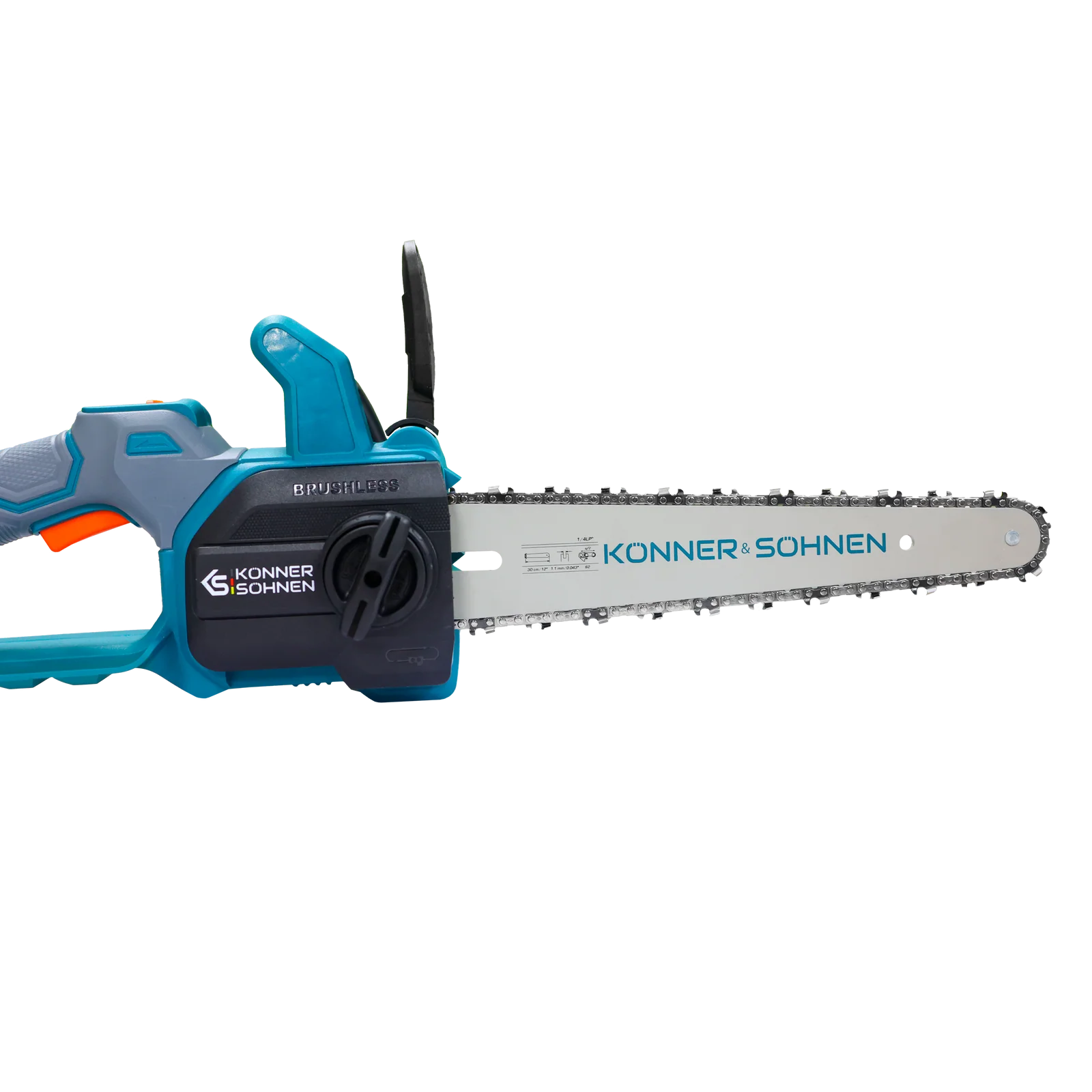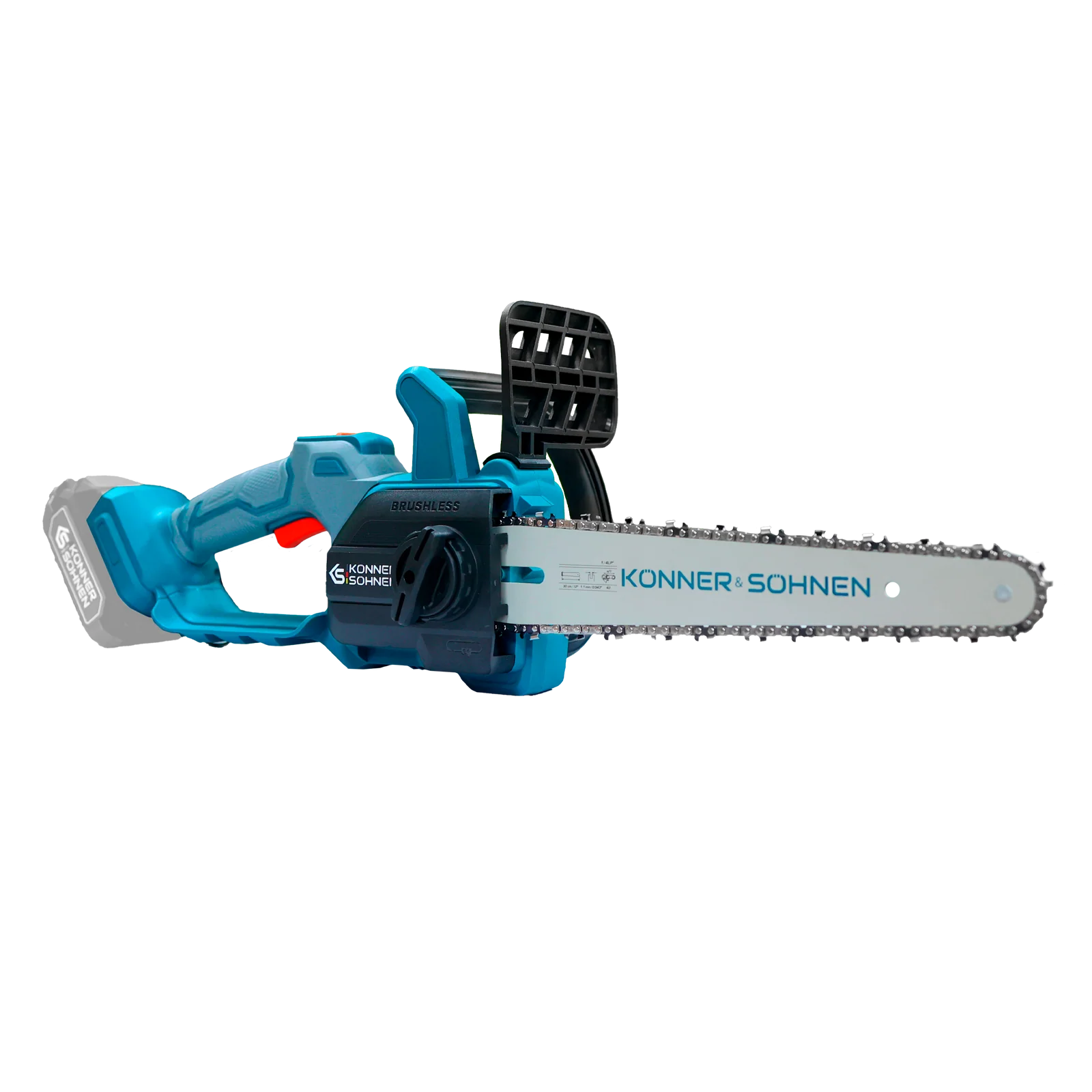 Saksa kaubamärgi Könner & Söhnen juhtmeta minisahk KS MCS20V-12 (aku ja laadija ei kuulu komplekti) ühendab endas võimsuse, liikuvuse ja mugavuse. Harjadeta mootor 5-aastase garantiiga tagab kõrge jõudluse ja vastupidavuse, samas kui 20V aku võimaldab juhtmevaba kasutamist. Keti kiirus 10 m/s ja 12″ (30 cm) juhtplaat teevad selle ideaalseks okste kärpimiseks, küttepuude ettevalmistamiseks ja puusepatöödeks. Tasakaalustatud disain, kerge korpus ja ergonoomiline ümar käepide vähendavad kasutamise ajal väsimust. Kahekordne kaitse, turvanupp ja vööaas tagavad ohutuse, samas kui tööriistavaba keti pingutamise mehhanism ja automaatne määrimine lihtsustavad hooldust.