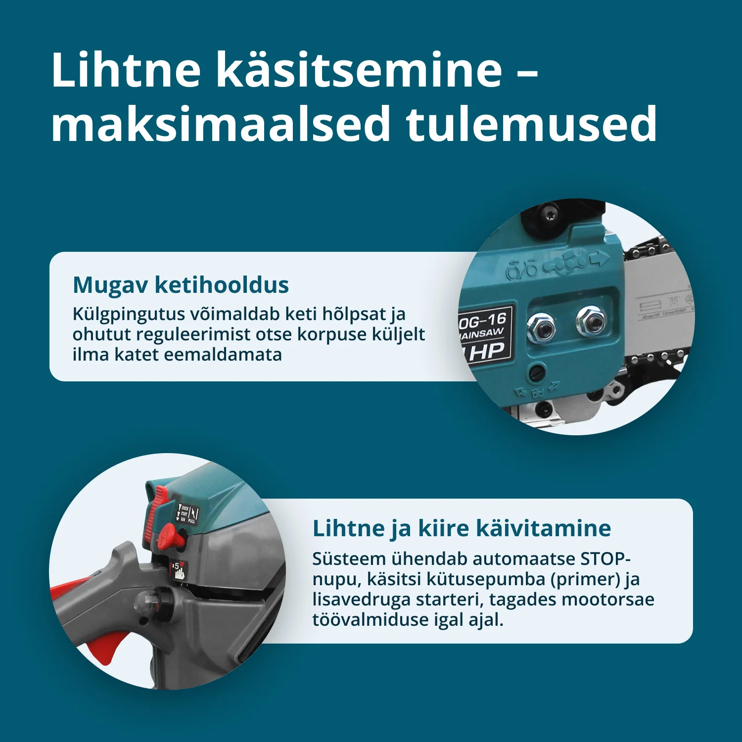 pärast mootori seiskamist naaseb nupp automaatselt START-asendisse. Tänu sellele on kettsaag alati valmis järgmiseks käivitamiseks ilma lisasammudeta.