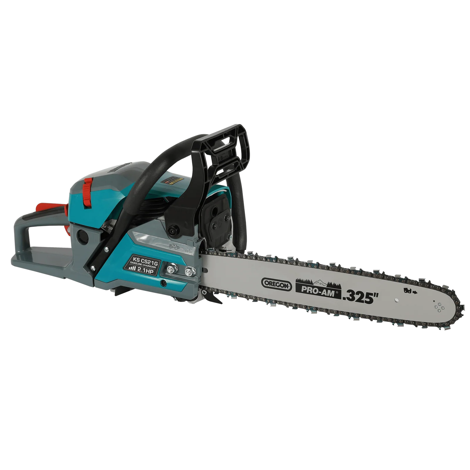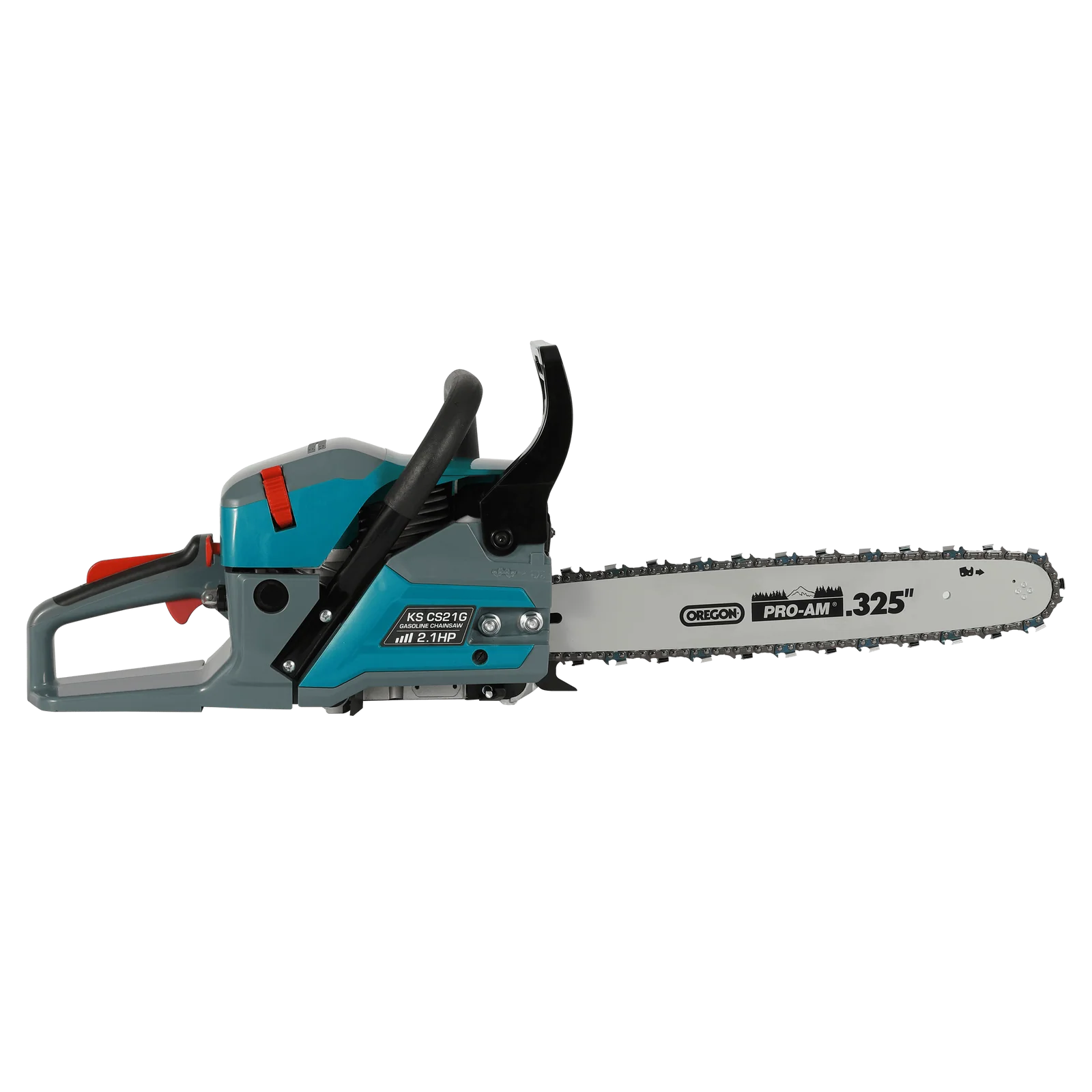 Könner & Söhnen® KS CS21G bensiinimootorsaag on kodumootorsaag, mis mitte ainult ei täida ülesandeid tõhusalt, vaid tagab ka mugavuse ja ohutuse töö ajal. See vastupidav ja võimas mootorsaag on ideaalne aia hooldamiseks, nagu puude langetamine ja okste lõikamine, samuti aiakonstruktsioonide, aedade ehitamiseks ja alade puhastamiseks ehitus- või maastikukujunduse ettevalmistamisel.