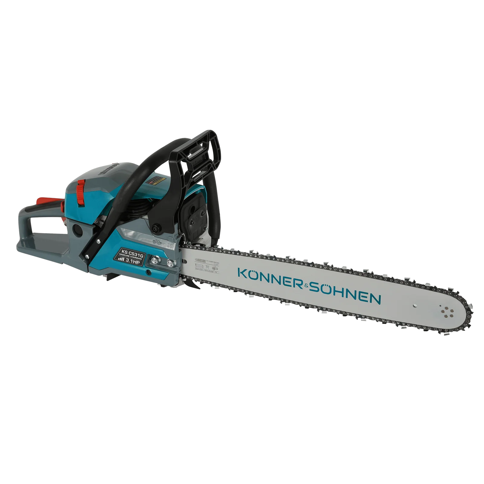 KS CS31G bensiinimootorsaag on varustatud kütusesäästliku mootoriga, automaatse määrimissüsteemiga, mugava külgketi pingutusega ja lihtsa käivitussüsteemiga. Võrgust sõltumatus muudab mootorsae mobiilseks ja autonoomseks.