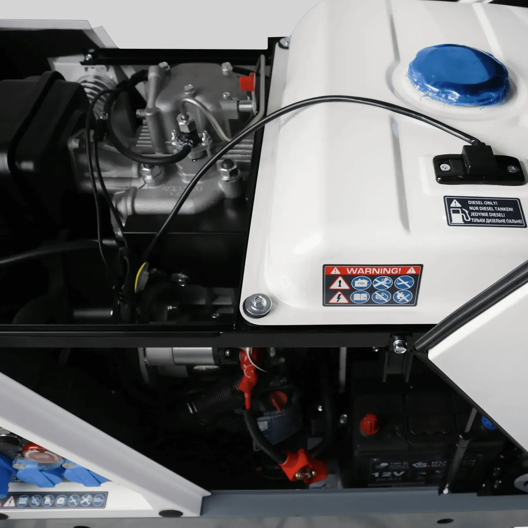 | Komplekt | Pakend, generaator, kasutusjuhend, võti 14–17, võti 12–10, GX20 pistik, 2 × ülemise kaane võti, kahepoolne kruvikeeraja, 2 × kaasaskantav toitepistik 230 V (16 A), kaasaskantav toitepistik 230 V (32 A), 2 × kaugjuhtimispulti, pikendatud lehter, aku laadimiskaabel, 4 × transpordiratas |