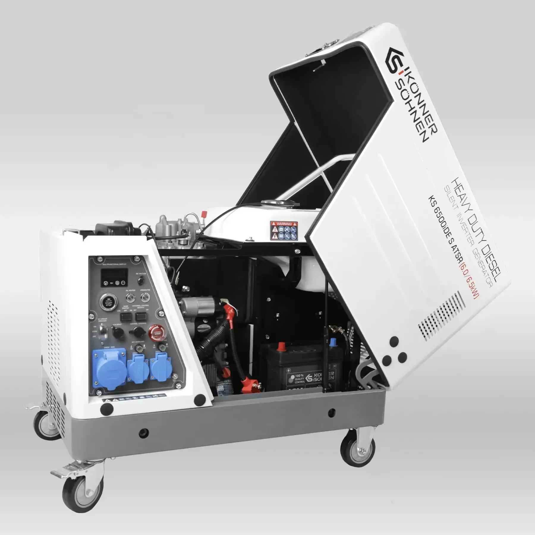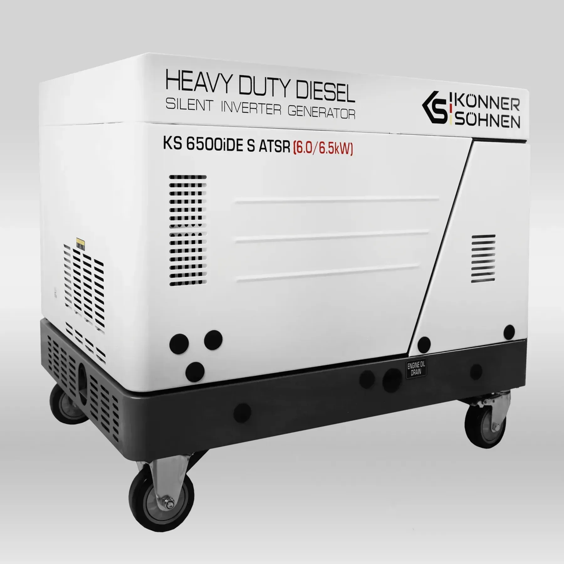 Diisel-invertergeneraator Könner & Söhnen® KS 6500iDE S ATSR on kaasaegne lahendus neile, kes vajavad stabiilset, ökonoomset ja maksimaalselt usaldusväärset elektrivarustust. Mudel ühendab tipptasemel invertertehnoloogia võimsa diiselmootoriga mürasummutavas korpuses, tagades puhta siinuslaine, madala kütusekulu ja mugava töö minimaalse müratasemega.