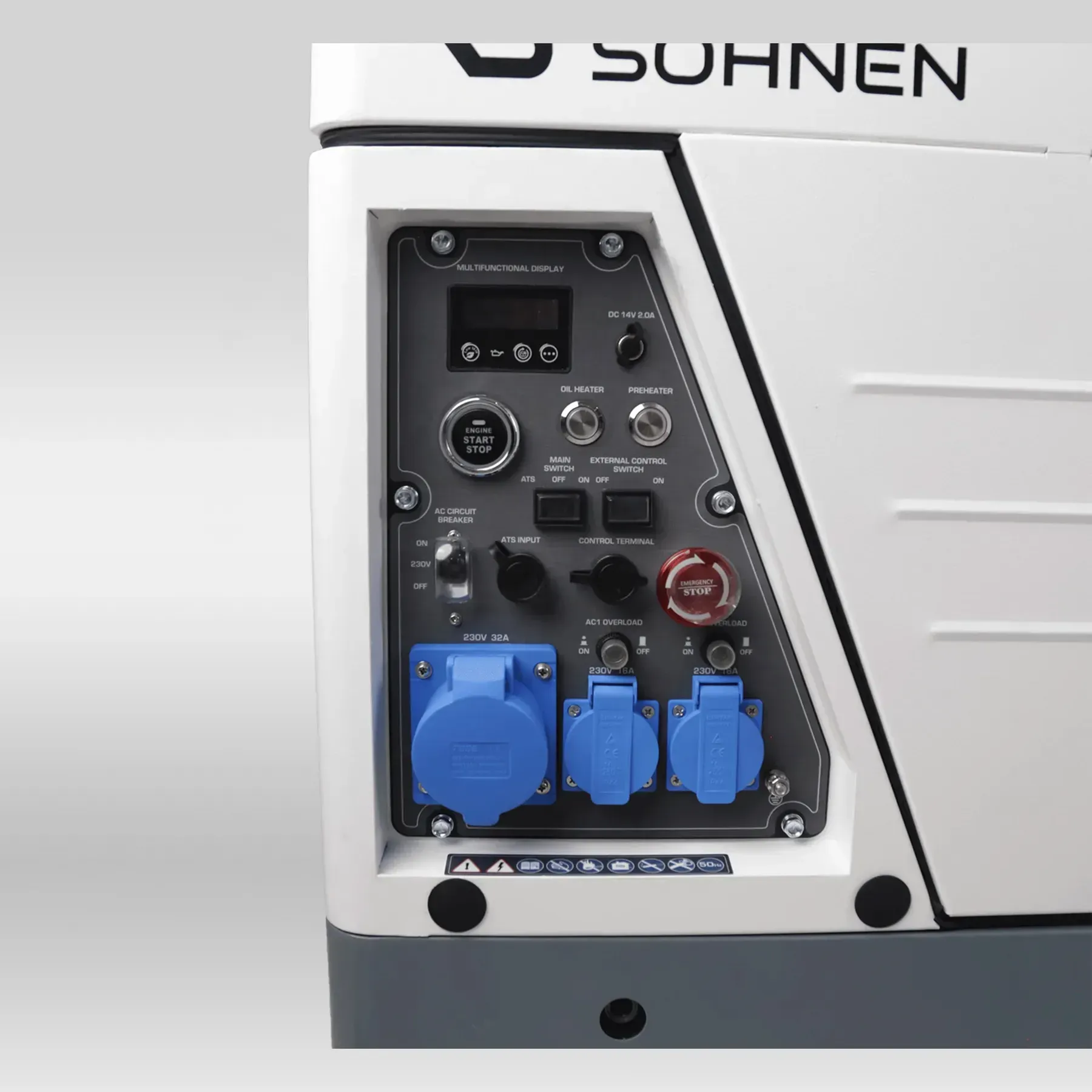 Informatiivne LED-ekraan kuvab pinget, sagedust, mootori töötunde ja viimase tööseansi kestust;