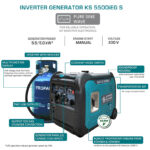 Saksa kaubamärgi “Könner & Söhnen” LPG/bensiini invertergeneraator KS 5500iEG S on mugav ja kompaktne madala müratasemega elektrienergia allikas. Selle mudeli üks peamisi omadusi on see, et see toodab elektrivoolu puhta siinuslainega.